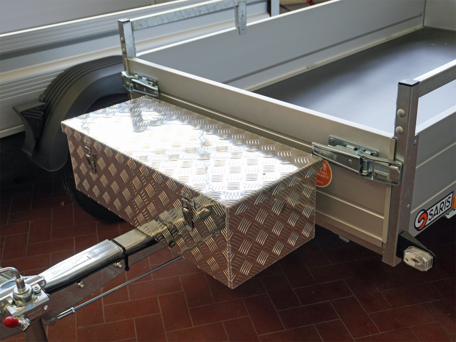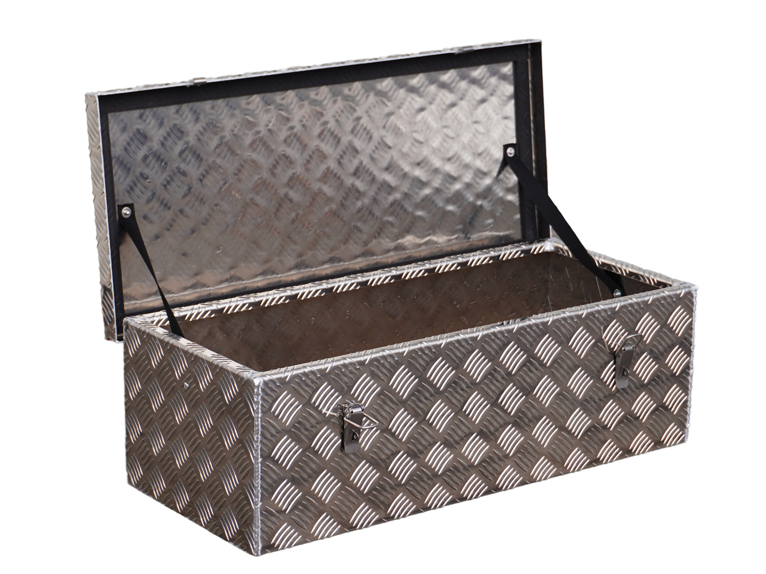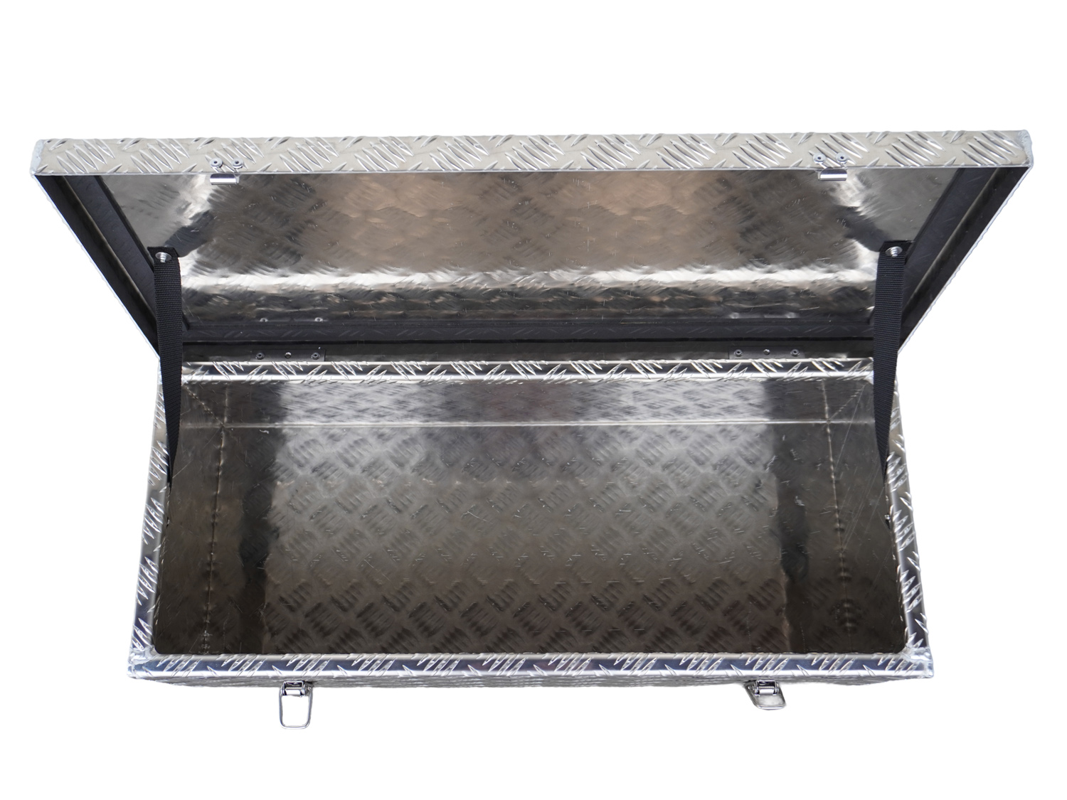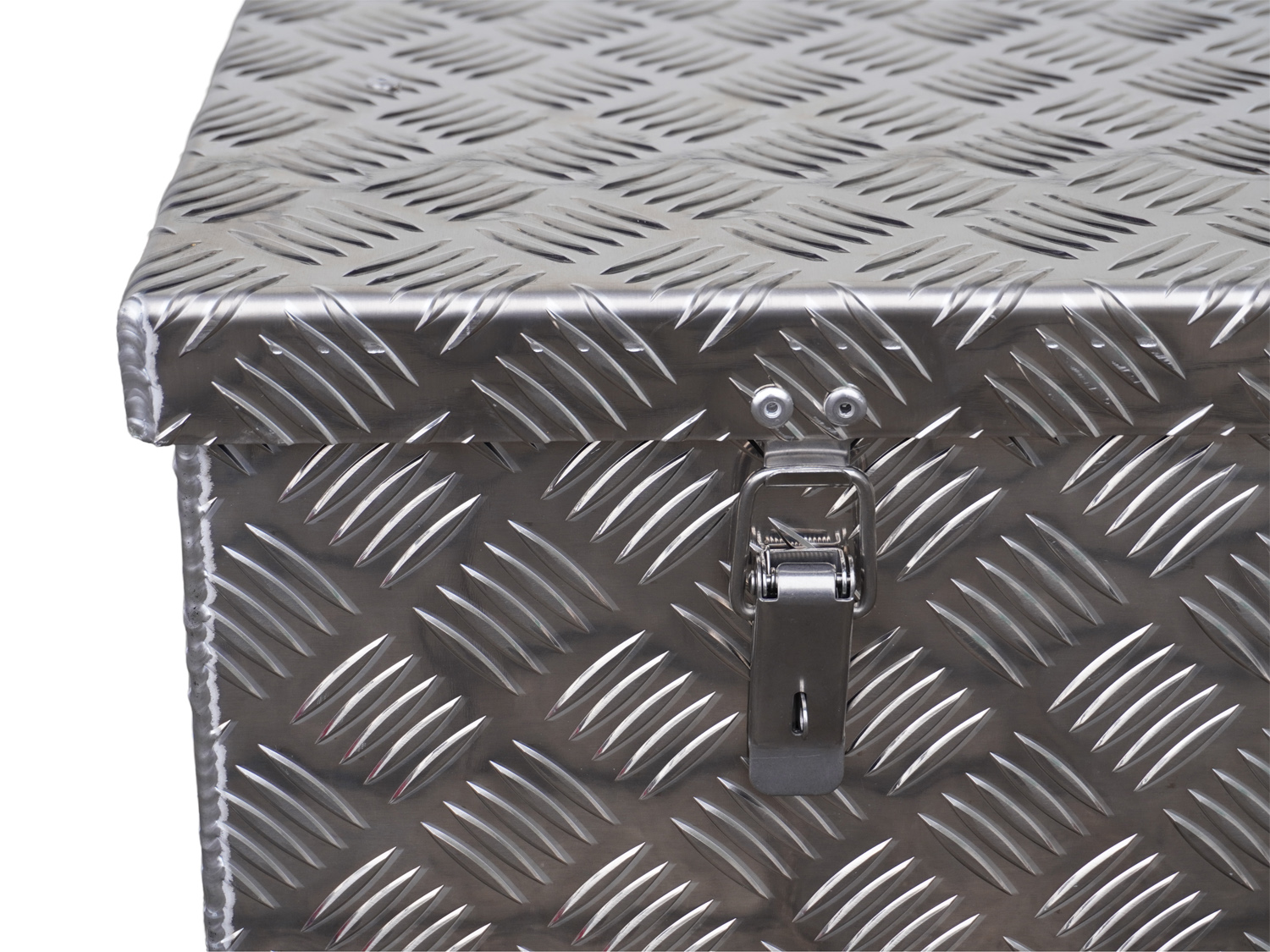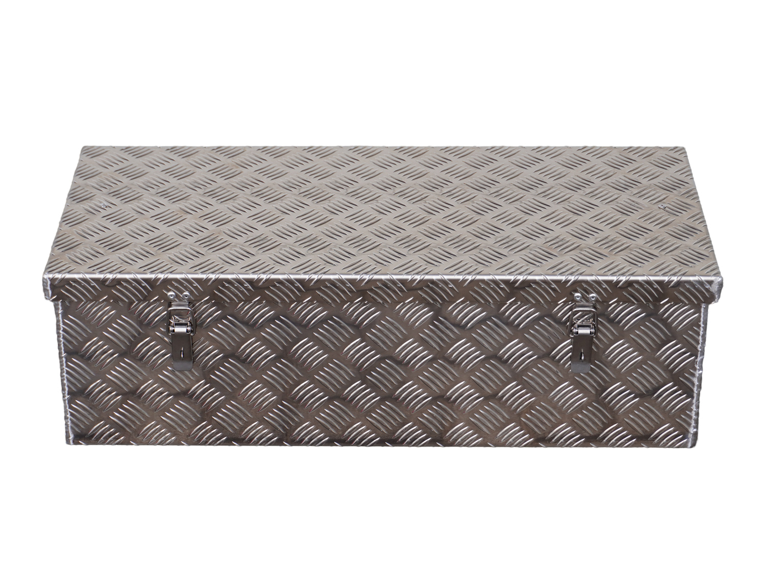 Stabile  Aluminium Transportbox mit 60 Liter Volumen. Als Transportbox und auch als Deichselbox zu verwenden. Aus stabilem  Alu Riffelblech gefertigt.  2 Edelstahlverschlüsse