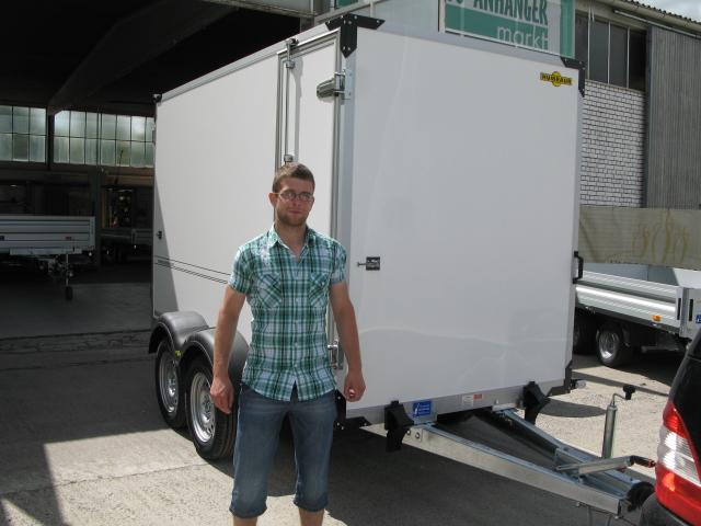 Jaroslav Kacer aus Tschechien holte seinen neuen 2,5to Humbaur Koffer mit Seitentüre gemeinsam mit seinen Sohn bei uns auf dem Ausstellungsgelände ab.