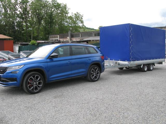 Unser Foto zeigt die Abholung des neuen Unsinn GTP mit 10 Zoll Fahrwerk, Alufelgen, Alu Planenaufbau und Gewebeplane in blau.