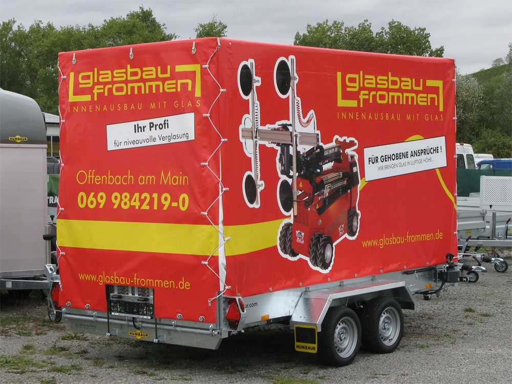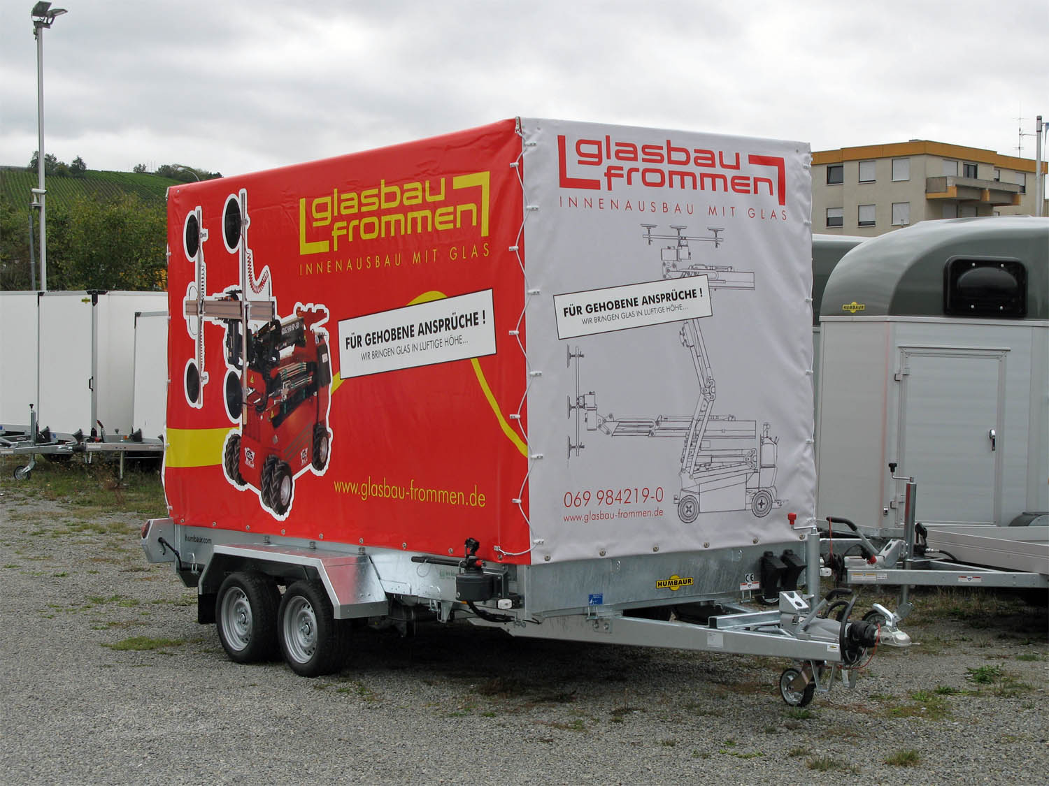 Nebenbei ist der Anhänger ein idealer Werbeträger. Die weiße Plane mit ganzflächigem Digitaldruck und Schutzlackierung zeigt Ihre Wirkung