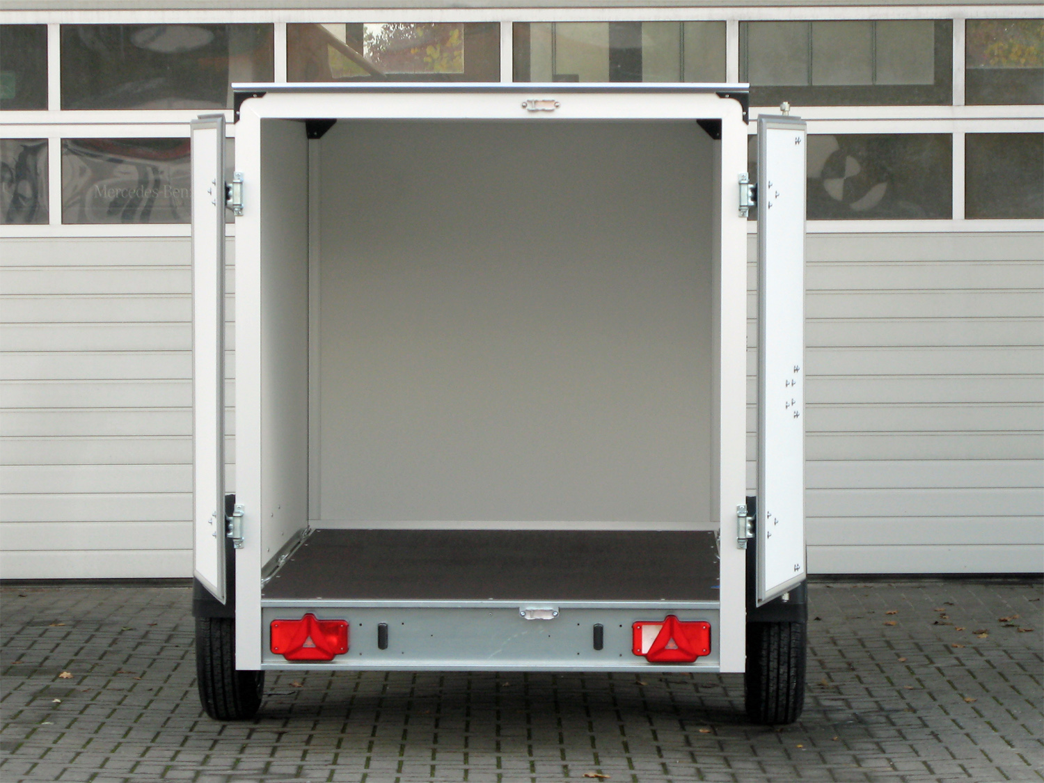 Unser Einachser ist maximal stabil konstruiert: feuerverzinktes Stahlfahrwerk, Kunststoffdichtungen an den Türen, massive Verstärkungen im Dachbereich und der Stirnwand - dieser Anhänger hat eine lange Lebensdauer. Das integrierte Zurrsystem sichert die Ladung im Innenraum. Eine Leuchte sorgt für ausreichendes Licht. So kommen Ihre Güter zuverlässig und unbeschädigt an. Der perfekte Werbeträger: Die Seitenwände des Einachsers bekleben wir gegen einen Aufpreis mit Ihrer individuellen Werbebotschaft. Davon werden Sie lange profitieren.