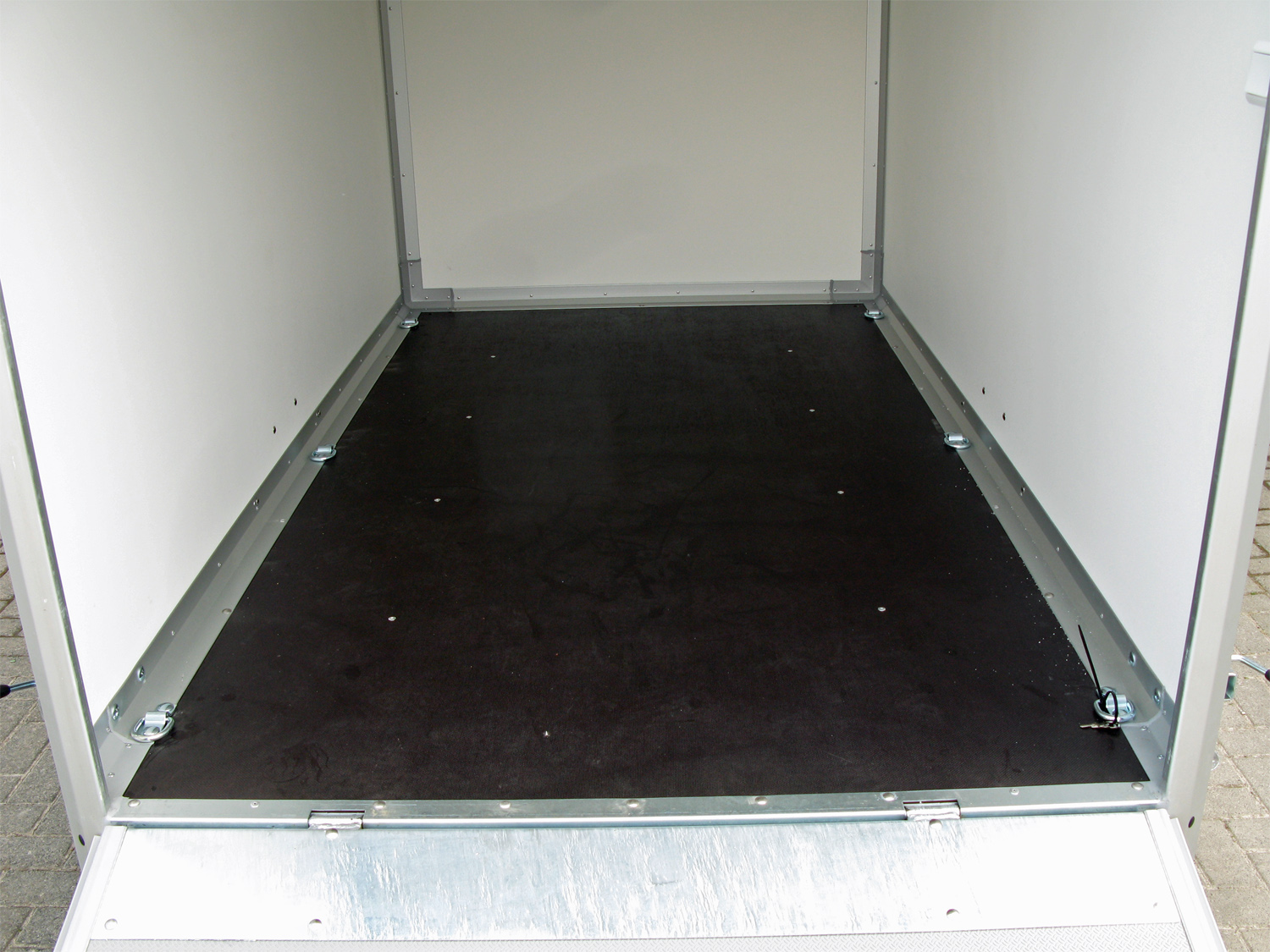 Der Anhänger ist mit zwei Hecktüren mit Stangenschloss ausgestattet, die einen einfachen und sicheren Zugang zum großzügigen Laderaum ermöglichen. Die Innenbeleuchtung (12 Volt LED) und sechs Zurrösen im Innenraum erleichtern das Beladen und Sichern des Ladeguts auch bei schlechten Lichtverhältnissen. Für mehr Flexibilität kann der Anhänger optional mit einer Heckrampe ausgestattet werden, wodurch das Verladen von schweren oder rollenden Gegenständen erleichtert wird. Zusätzlich können Zurrschienen gewählt werden, um bessere Möglichkeiten zur Ladungssicherung während des Transports zu bieten.