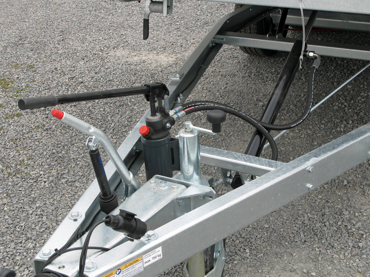 Er macht Ihnen jeden Einsatz so bequem wie möglich: Die hydraulische Brücke kippen Sie einfach mit einer Handpumpe, Gasfedern unterstützen Sie bei der Bedienung der Überfahrwand. Durch die niedrige Ladehöhe von 650 mm bleibt der Auffahrwinkel sehr flach. Sie können so auch tiefer liegende Maschinen und Automobile problemlos verladen. Damit Sie die Fahrzeuge mühelos auf den Anhänger bekommen, steht Ihnen ein stabiler, optional erhältlicher Seilwindenbock mit Seilwinde zur Verfügung. Die durchdachte Fahrwerkstechnik des MTK Allcomfort sorgt für ein ausgesprochen ruhiges Fahrverhalten.