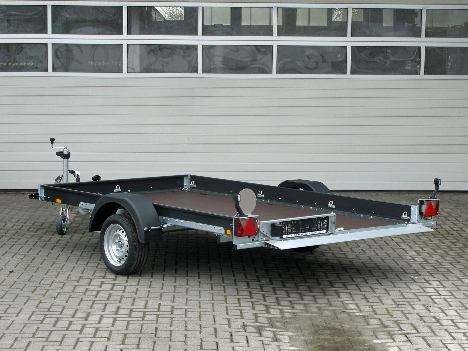 - Aufbau 3-seitig aus stabilem Stahlprofil verzinkt und pulverbeschichtet in schwarzgrau (RAL 7021) - 100 km/h Ausführung