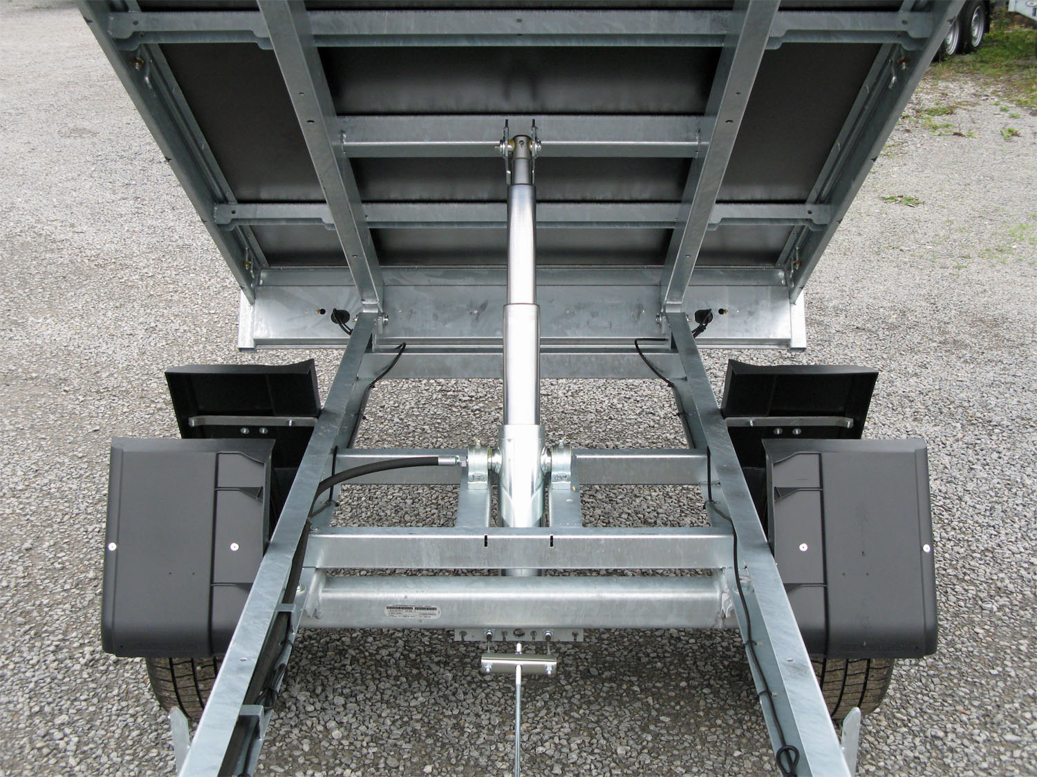 • Ein-Achser Rückwärtskipper mit Hydraulikzylinder und Handpumpe vollständig geschweißter und... mehr