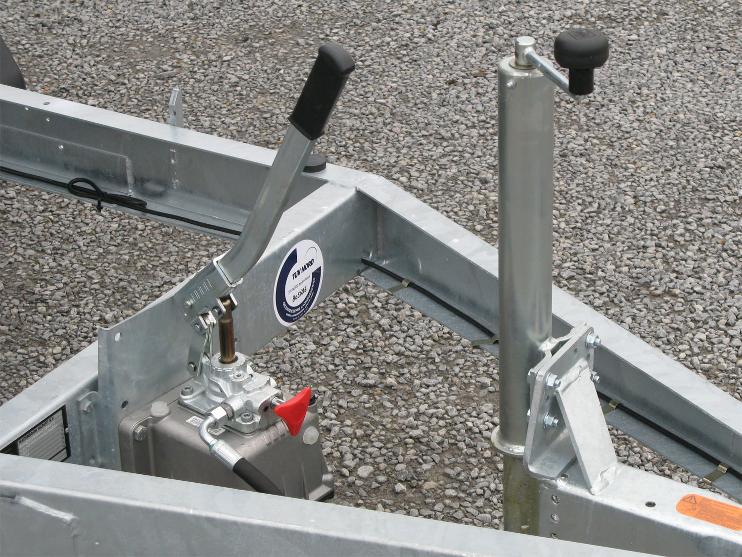 • eingebauter solider Hydraulikzylinder, der mit einer Handpumpe bedient werden kann