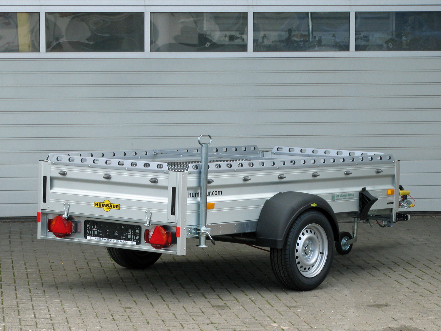 • Gebremst inkl. Radstoßdämpfer, Auffahrschienen, Standschiene, Reling, Flachplane, Schiebestütze, Werkzeugbox lose