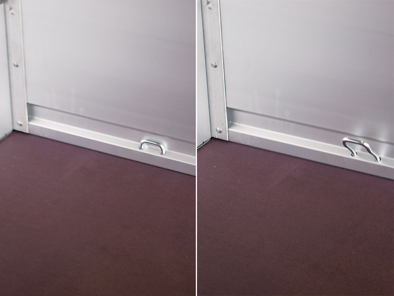 - versenkte Zurrbügel zur Ladungssicherung in den Seitenbordwänden (bis 2050 mm Kastenlänge 4 Stück, ab 2510 mm Kastenlänge 6 Stück)