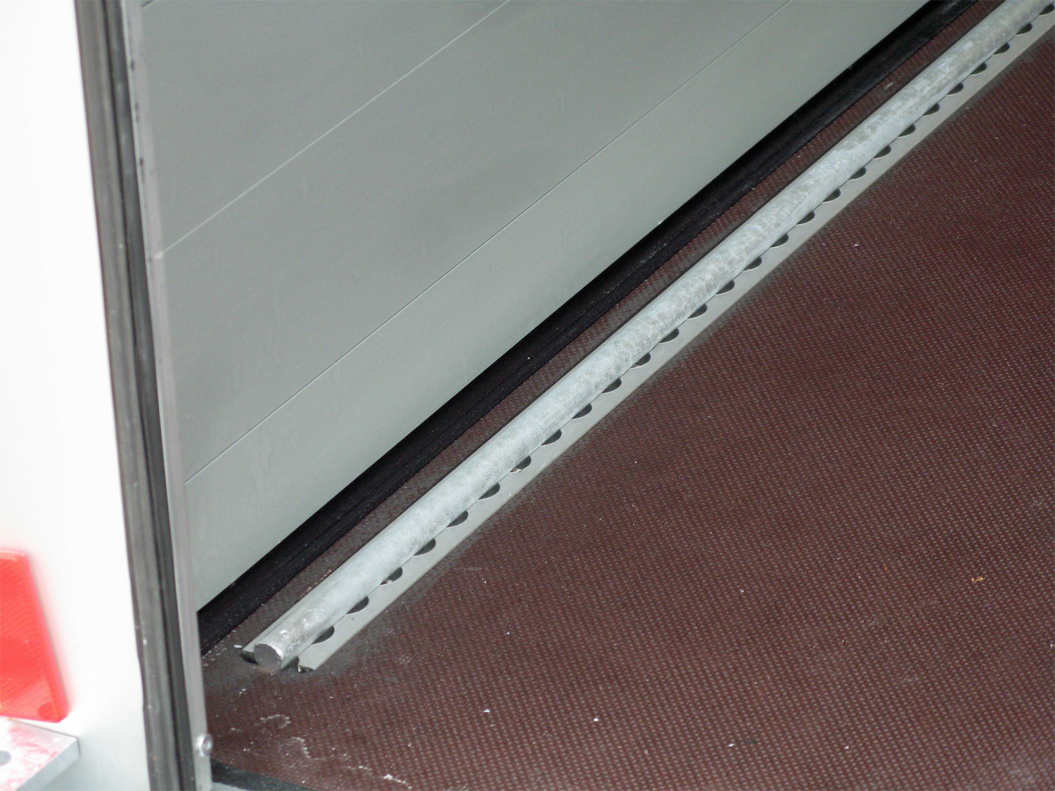 6 St. Anbinderinge versenkt in Holzboden, Zugkraft je 0,4 t. Die Ringe dürfen nur über den Querträgern montiert werden