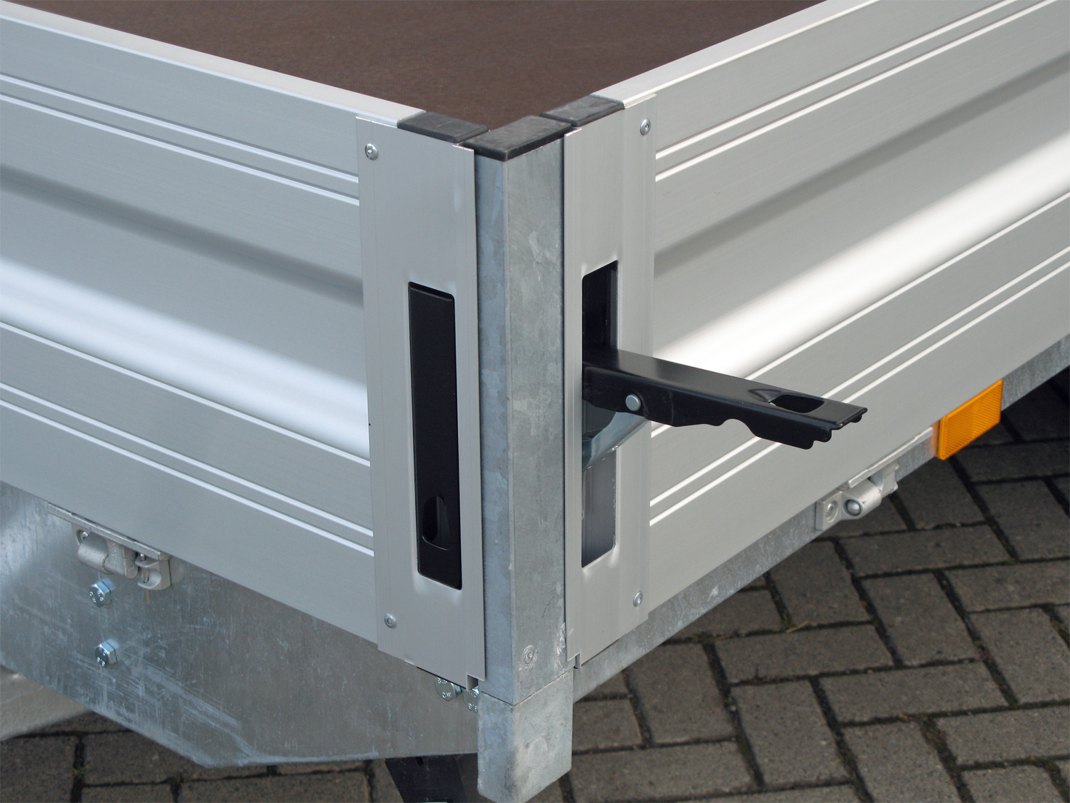 • abnehmbare Bordwände aus eloxiertem doppelwandigem Aluminiumprofil