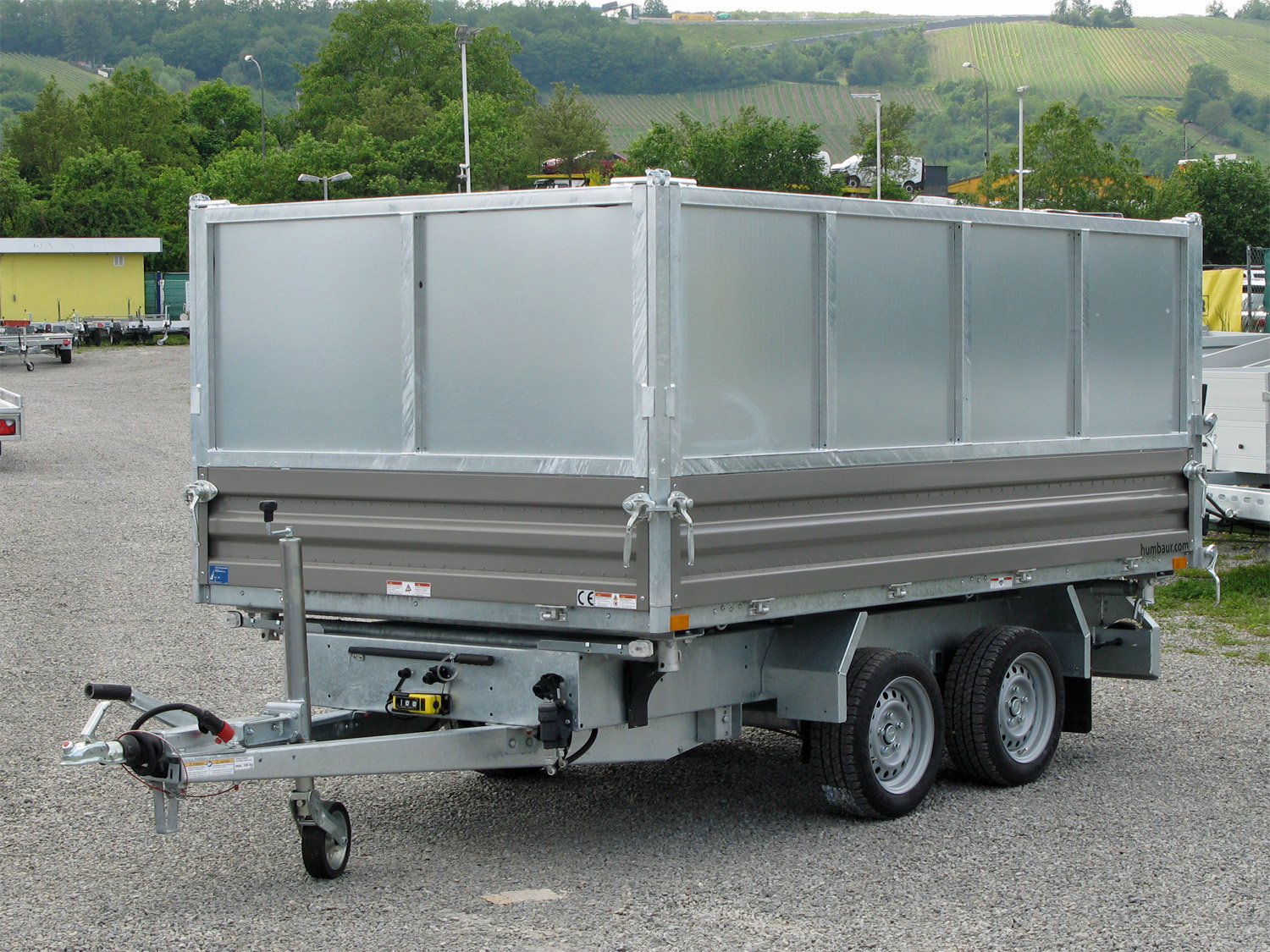 • Dreiseitenkipper Stahlbordwand incl. Stahlblechaufsatz 800 mm pendelbar, abnehmbar Fahrwerk,... mehr