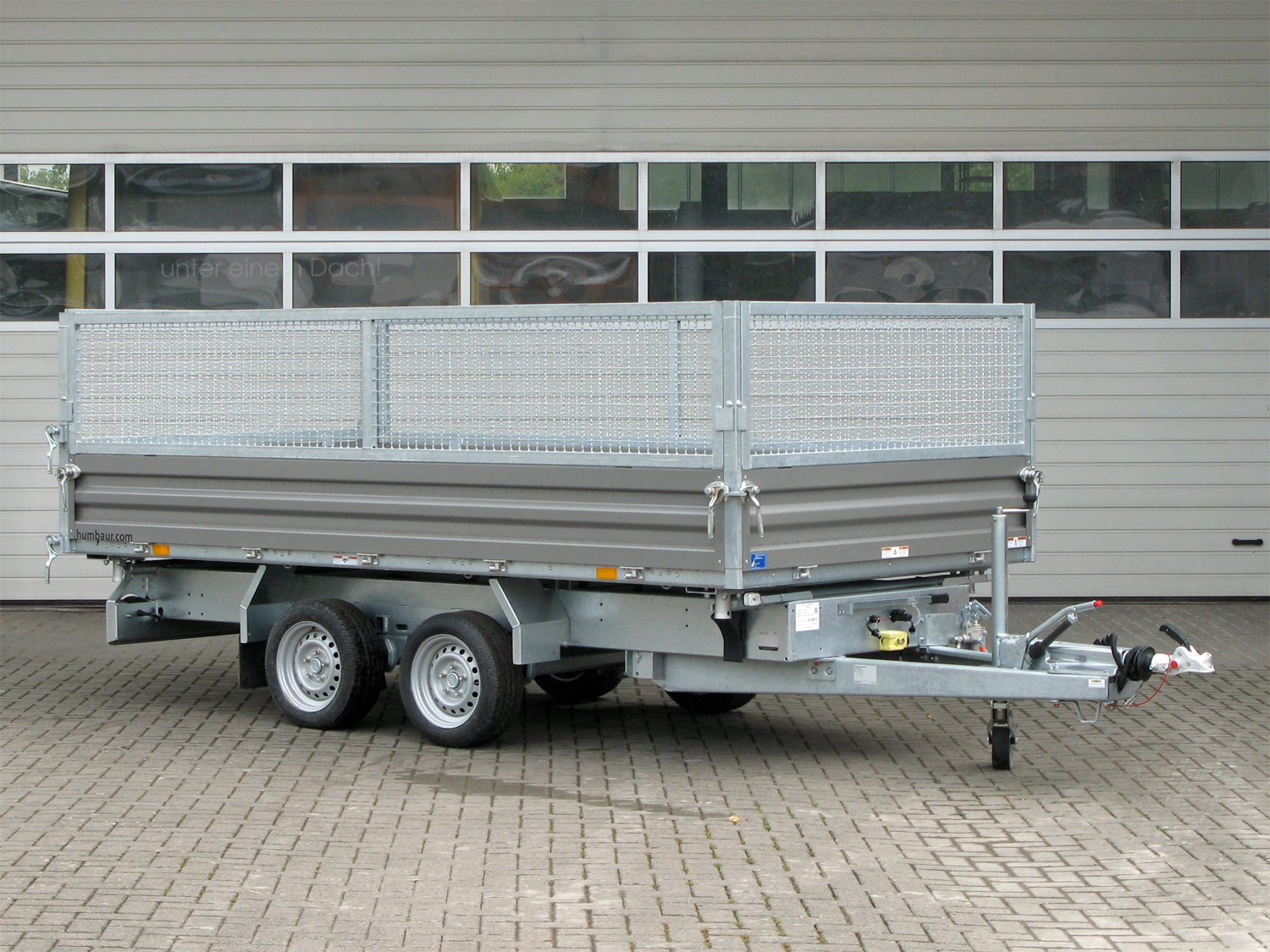 • Dreiseitenkipper Stahlbordwand inkl. Gitteraufsatz 600 mm hoch Fahrwerk, der Rahmen und... mehr