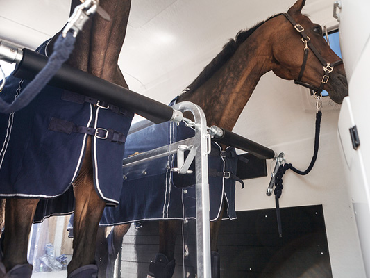 - Abschließbare Sattelkammer mit Beleuchtung, ausziehbarem Sattelhalter, Trensenhalter, Innenspiegel, Staunetz, Innenbeleuchtung, Schaufel und Besen