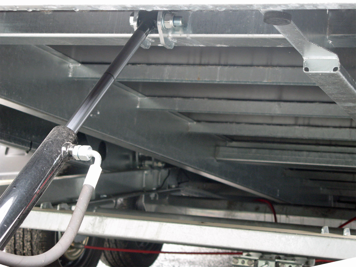 Er macht Ihnen jeden Einsatz so bequem wie möglich: Die hydraulische Brücke kippen Sie einfach mit einer Handpumpe, Gasfedern unterstützen Sie bei der Bedienung der Überfahrwand. Durch die niedrige Ladehöhe von 650 mm bleibt der Auffahrwinkel sehr flach. Sie können so auch tiefer liegende Maschinen und Automobile problemlos verladen. Damit Sie die Fahrzeuge mühelos auf den Anhänger bekommen, steht Ihnen ein stabiler, optional erhältlicher Seilwindenbock mit Seilwinde zur Verfügung. Die durchdachte Fahrwerkstechnik des MTK Allcomfort sorgt für ein ausgesprochen ruhiges Fahrverhalten.