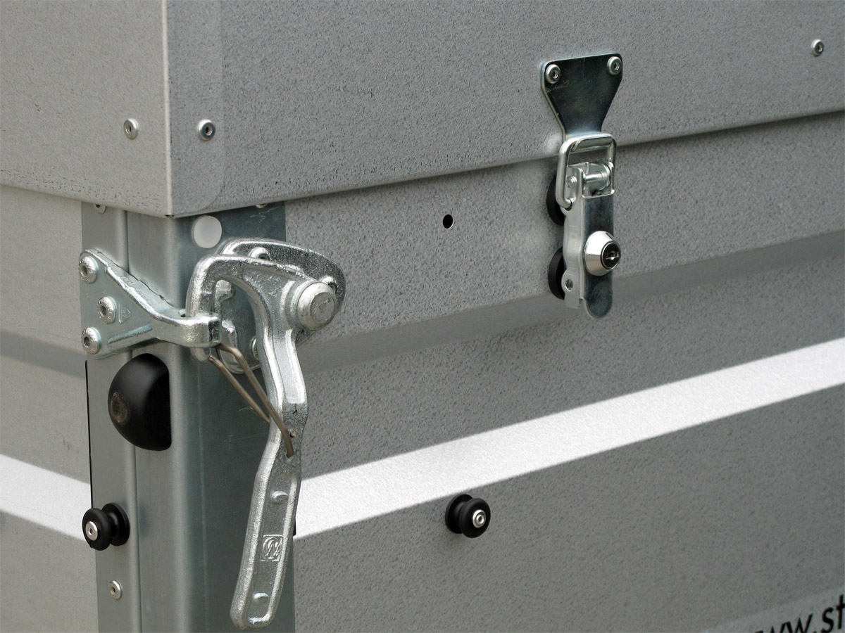 - stabile Stahlguss-Winkelhebelverschlüsse (modellabhängig)