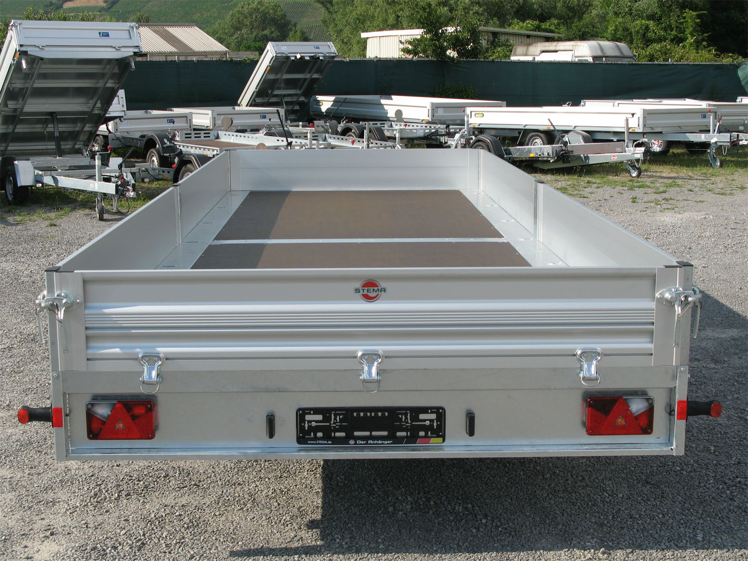 Eine 6-Meter lange Ladefläche freut alle, die langes Stangenmaterial, Holzbalken, Rasenkanten, Leitern etc. transportieren müssen. Der neue Maxi-Transporter von STEMA bietet mehr als 8 Quadratmeter stabile Ladefläche (Länge: 6,10 m x Breite 2,14 m) und ist als Tandem-Achser mit dem zulässigen Gesamtgewicht von 3,5 Tonnen konfiguriert.
