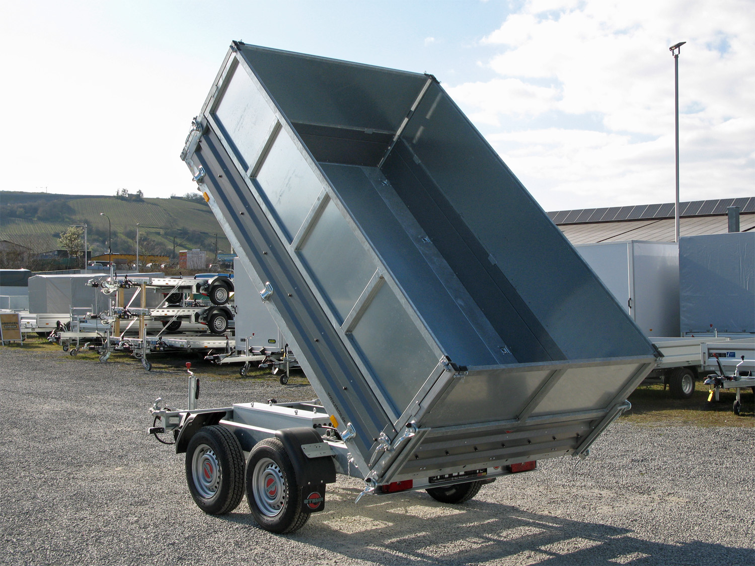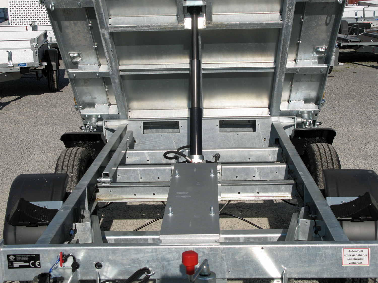 • Grundrahmen (Fahrgestell) und Kippbrücke aus massiven Stahlprofilen geschweißt und im Tauchbad feuerverzinkt