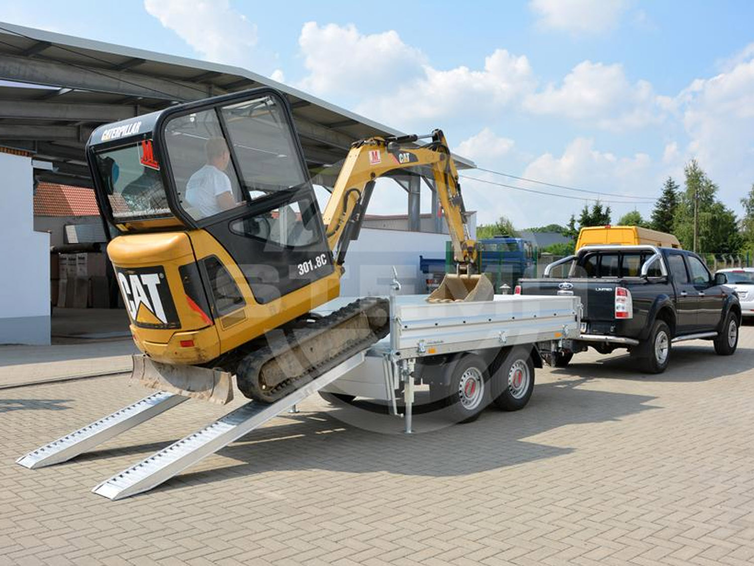 ALU-Auffahrrampen Set inkl. Gleitschiene und Teleskopkurbelstützenset für Dreiseitenkipper TRIUS
