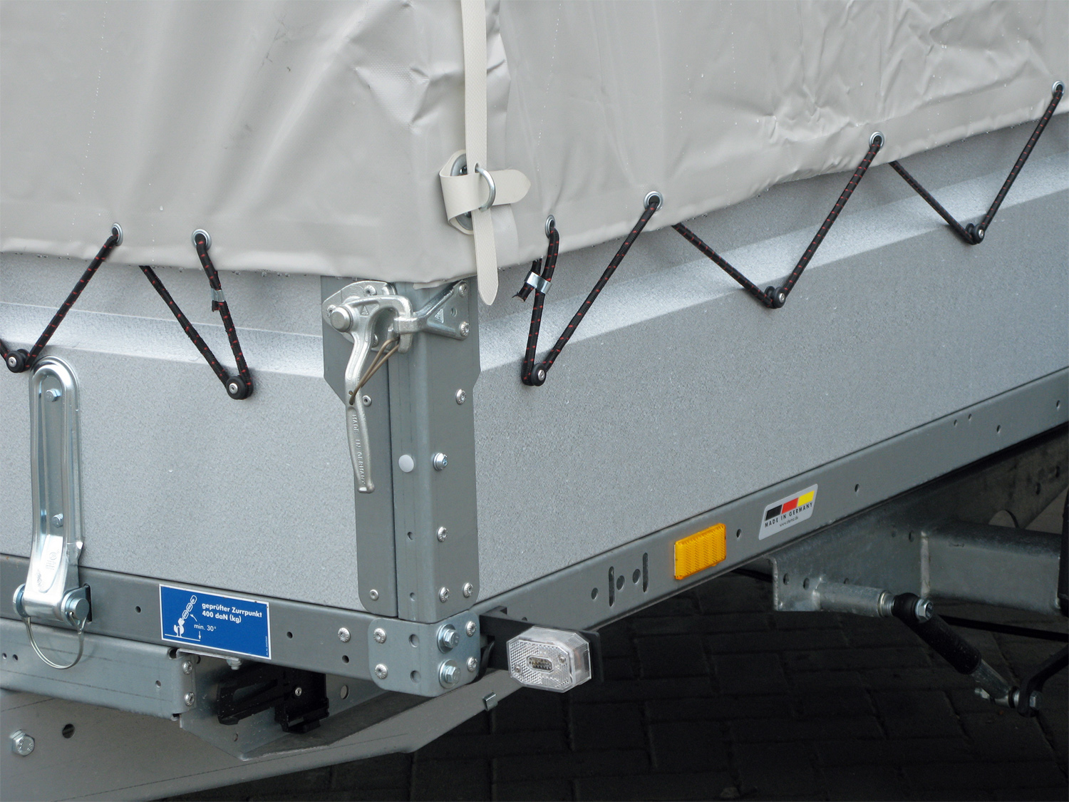 • Premium Planenaufbau 150 cm Innenhöhe 185 cm montiert 100km/h Ausführung - Stoßdämpfer... mehr