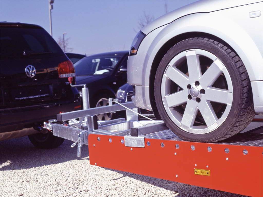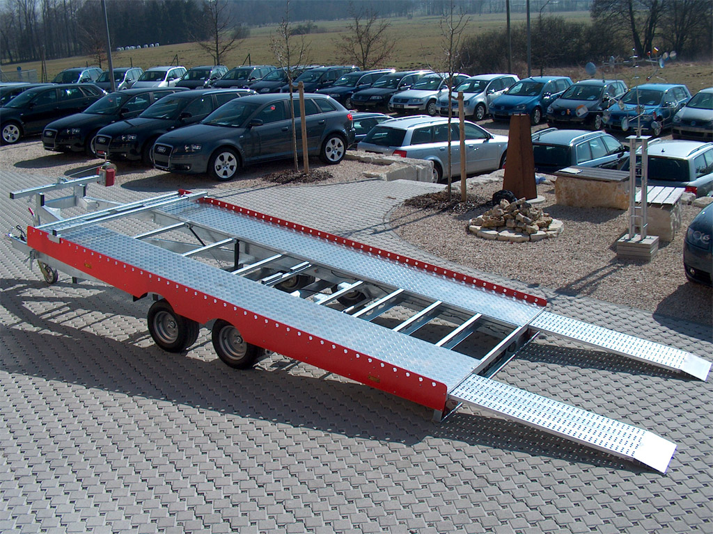 - Durch die Ladeflächenlänge von ca. 4300 mm und einer langen Zugdeichsel können sowohl große heck- als auch frontlastige Fahrzeuge transportiert werden. Die Nutzbreite von 2070 mm bietet zudem Platz für breite Fahrzeuge.