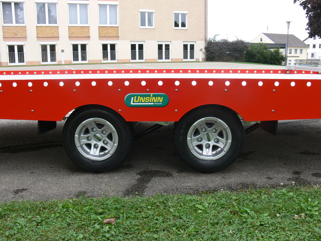 - Die Seitenschürzen sind in Verkehrsrot RAL 3020 pulverbeschichtet und bieten neben einer Warnfunktion eine große Werbefläche