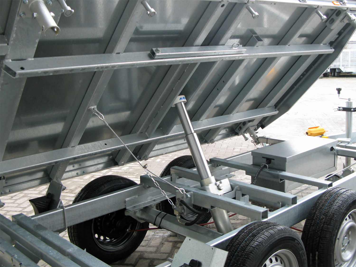 Bordwände 350 mm zusätzlich seitlich und stirnseitig mit Stahlbeplankung, IL x IB 2760 x 1500 mm