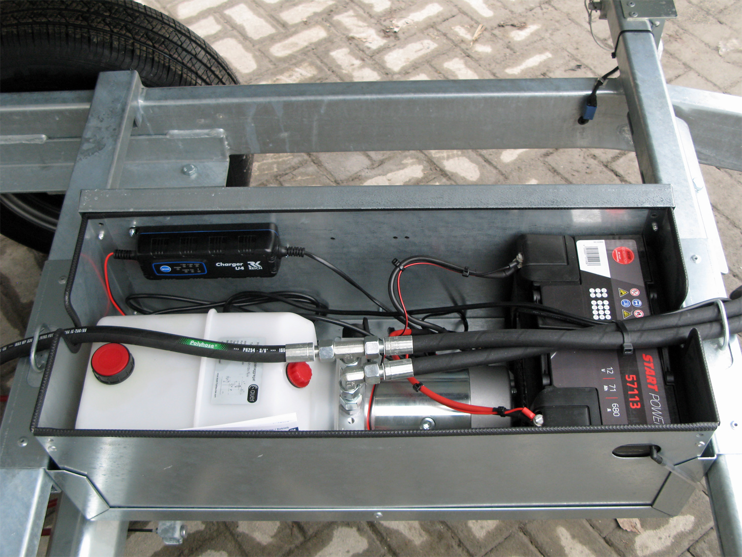 Geschützt montierte E-Hydraulik mit Batterie und leistungsfähigem Ladegerät für lange... mehr