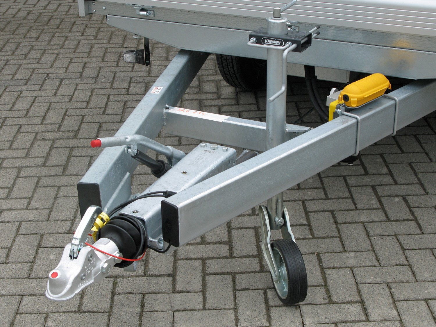 - Verstärktes, automatisches Stützrad, für sicheres Abstellen des beladenen Anhängers, Tragkraft 500kg