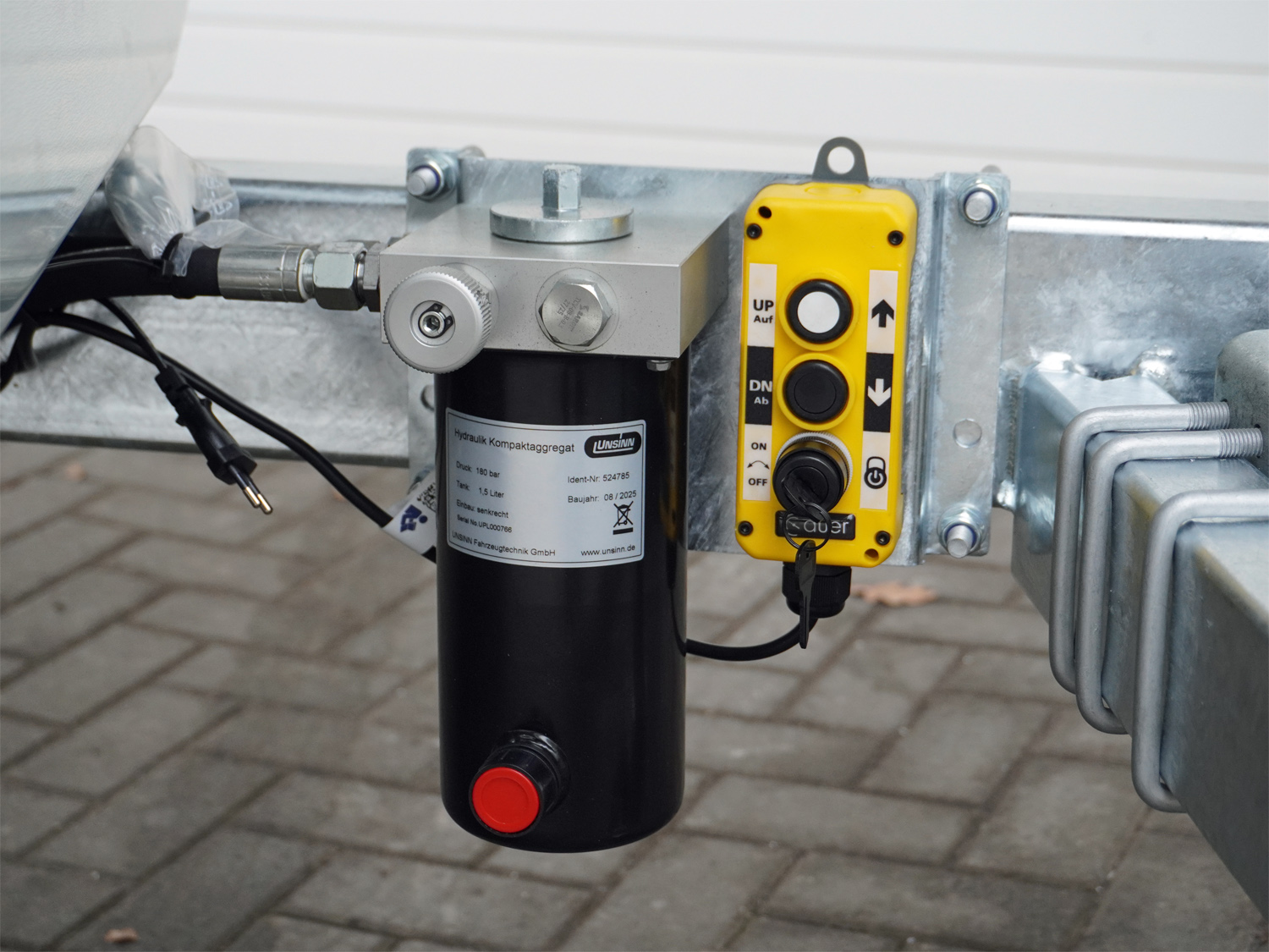 Sondermodell Plus 60 incl. 600 mm Alubordwandaufsatz (Gewicht von 101 kg reduziert die Nutzlast ) Hydraulik: E Hydraulik mit Batterie und Ladegerät, Notpumpe Pumpless für Akkuschrauber Klappbarer Kennzeichenhalter für Verstauen der Auffahrschienen unter der Lagefläche