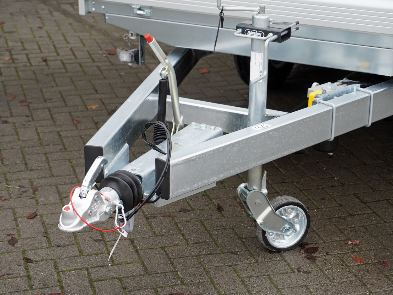 • Verstärktes, automatisches Stützrad, für sicheres Abstellen des beladenen Anhängers, Tragkraft 500kg