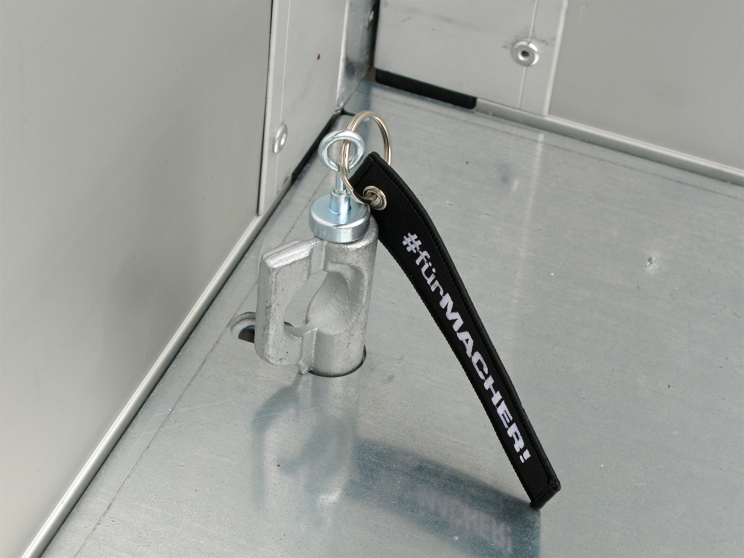 - 18 Zurrpins im Stahlboden versenkt montiert, Zugkraft pro Zurrpin bis zu 1.500 kg