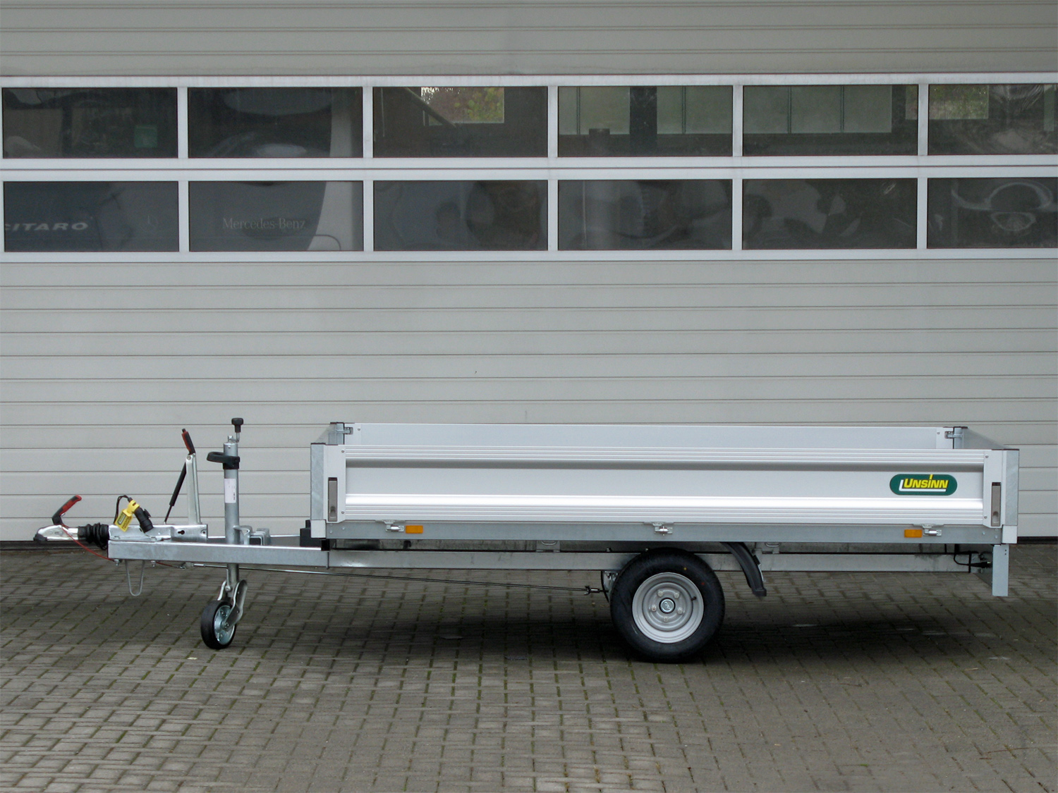 - Verstärktes, automatisches Stützrad, für sicheres Abstellen des beladenen Anhängers, Tragkraft 500kg