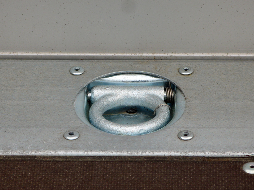 • 6 Zurrmulden klappbar, im Bodenrahmenprofil versenkt montiert