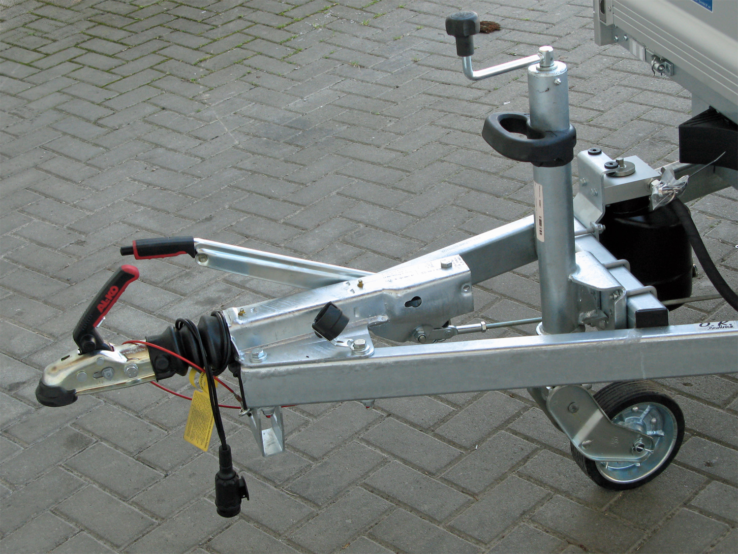 - Verstärktes, automatisches Stützrad, für sicheres Abstellen des beladenen Anhängers, Tragkraft 500 kg
