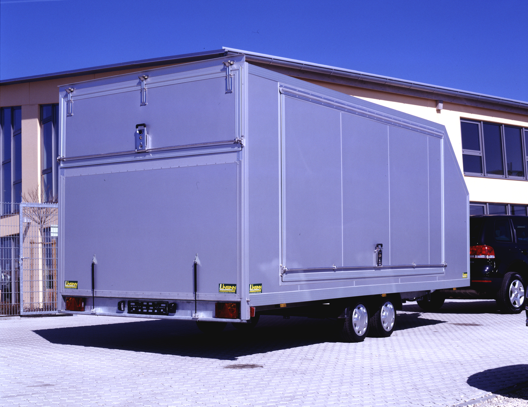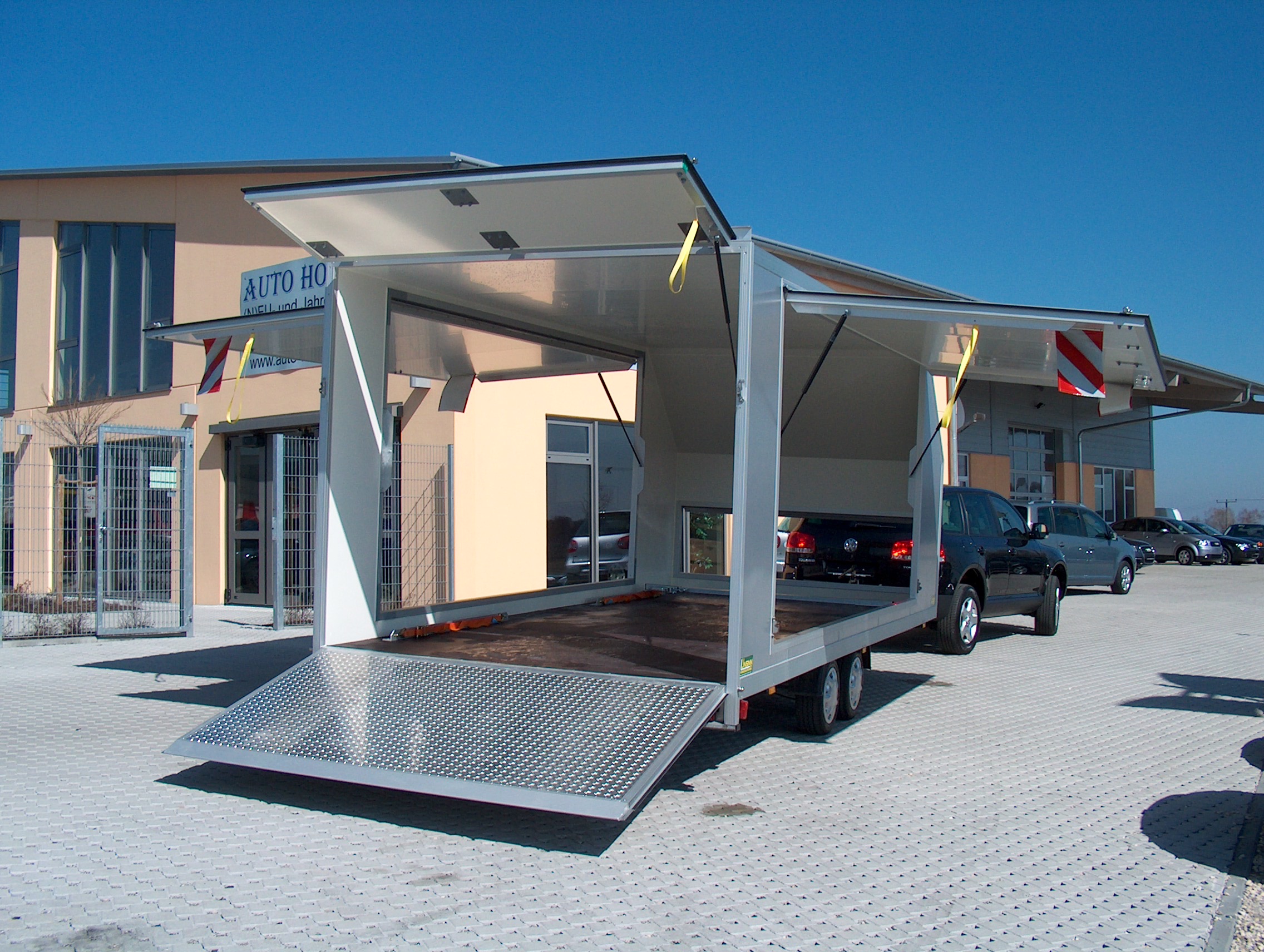 - Heckseite mit Klappe nach oben und Auffahrklappe mit Gasfederhubhilfe unten