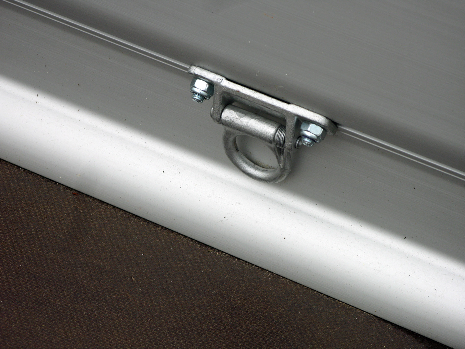 • Aluminium-Hohlprofil, eloxiert, hinten abklappbar, mit versenkten Verschlüssen