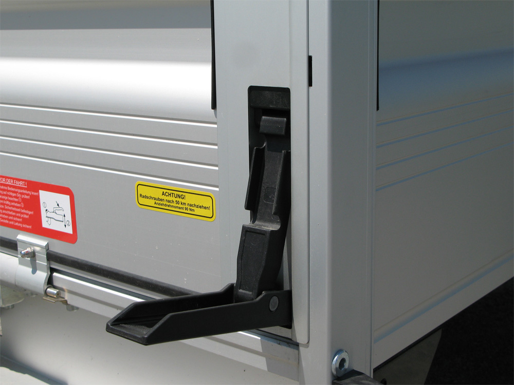 Stirnbordwand abklappbar, nur bei einachsigen Fahrzeugen (zulässiges Gesamtgewicht < 2000 kg)