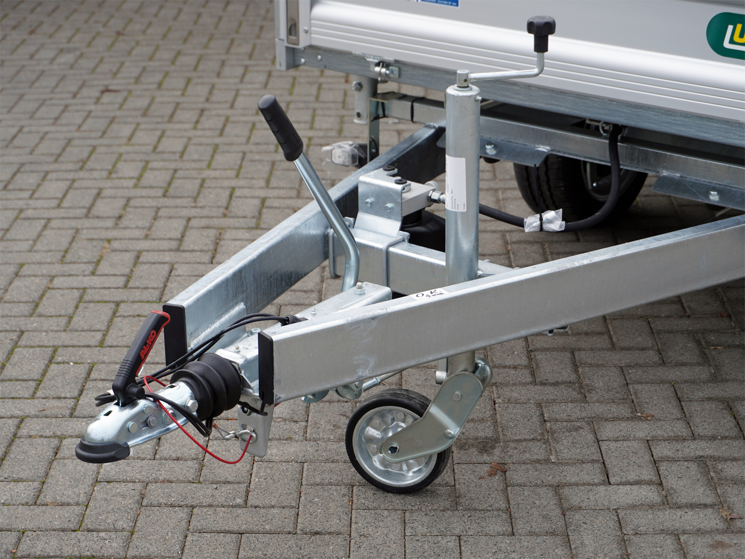 • Verstärktes, automatisches Stützrad, für sicheres Abstellen des beladenen Anhängers, Tragkraft 500kg